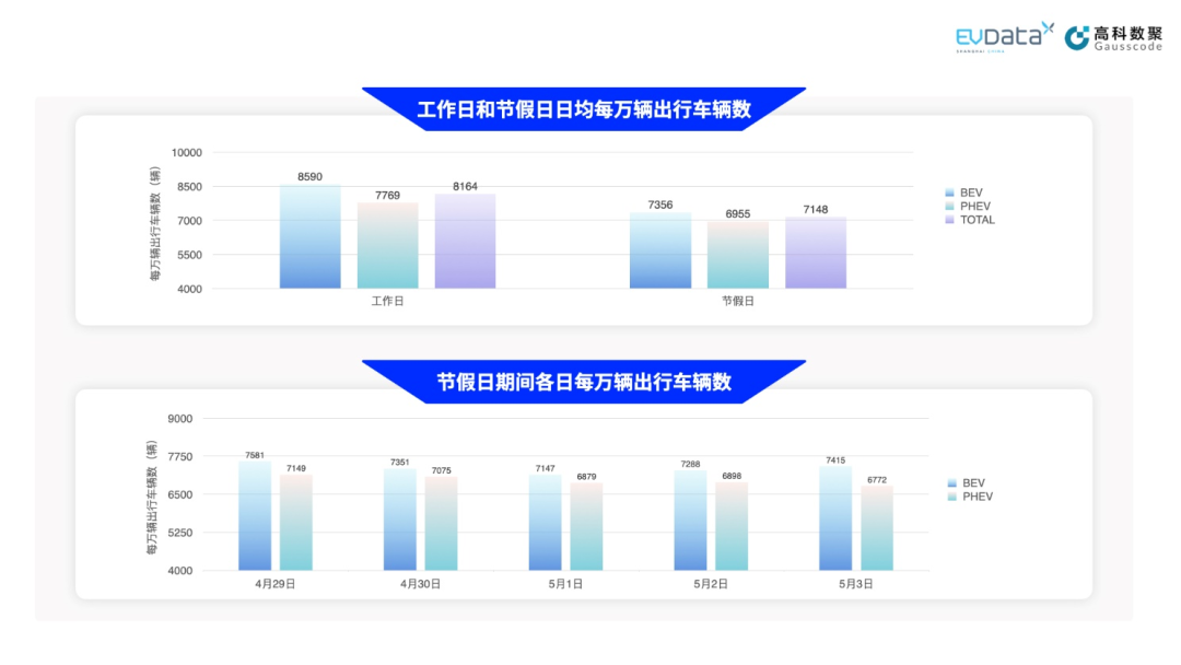 为更好体现新能源汽车在不同场景下的出行特征,五一期间新能源的出行数据将区分为市区出行和跨市出行分别进行展示[8]